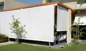 Toldos ideales para terrazas o galerías, de caída vertical que caen por propio peso con accionamiento manual o motorizado.